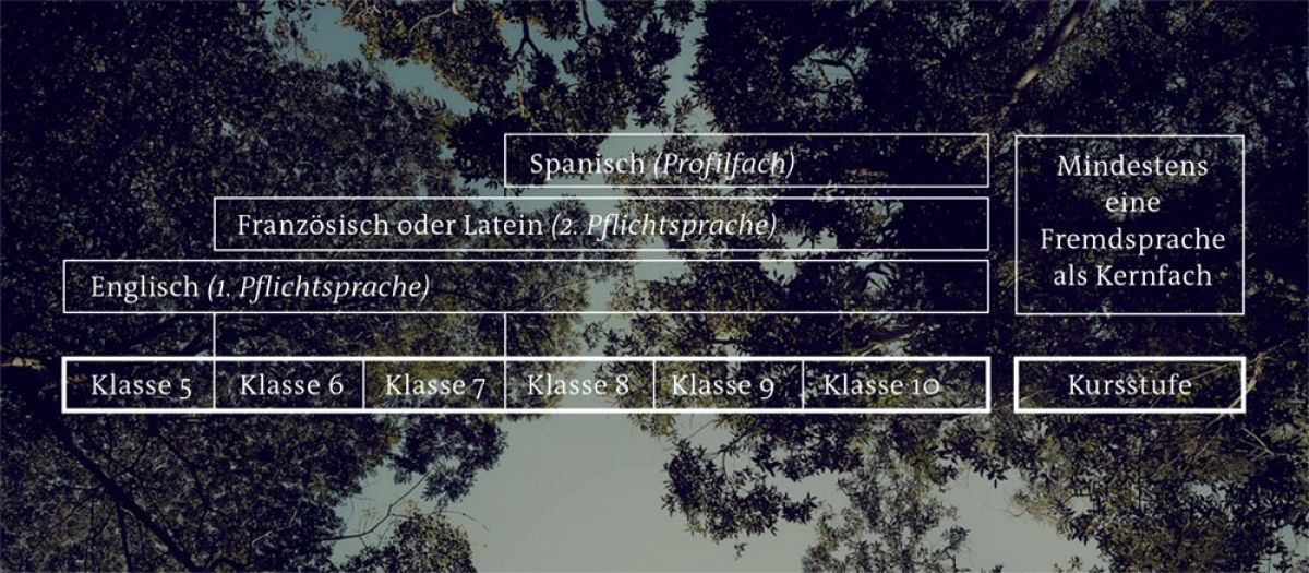 In der Kursstufe muss mindestens eine Fremdsprache als 4-stündiges Kernfach im Pflichtbereich bis zum Abitur geführt werden. Weitere Fremdsprachen können im Wahlbereich belegt werden.