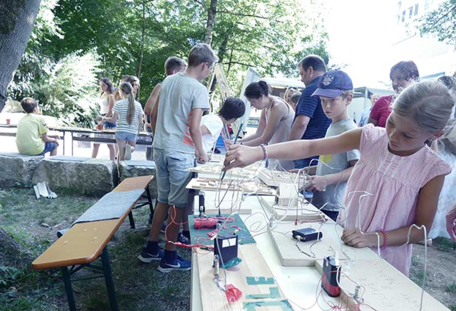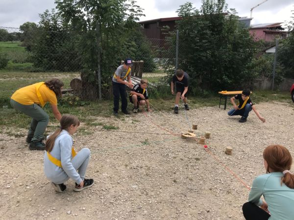 Nach der Höhlentour gab es noch einige Spiele. Man musste beim ersten Spiel Holzkugeln mit einem Seil verbunden an Holzstangen werfen. Beim zweiten Spiel musste man mit Flossen laufen. Dabei musste man eine 6 oder eine 1 würfeln, damit man weiterkommen kann. Das andere Team musste einen Holzturm bauen. Das dritte Spiel war mit einer Schnur. Die musste durch die T-Shirts gefädelt werden. Im vorletzten Spiel musste man Schlösser knacken, doch niemand wusste, welcher Schlüssel zu welchem Schloss passt. Am letzten Spiel angekommen, mussten wir einen Hula-Hup-Reifen durch uns durchfädeln. Doch wir hatten davor einen kleinen Kreis gebildet. Der Gewinner aller Spiele war Team grün.